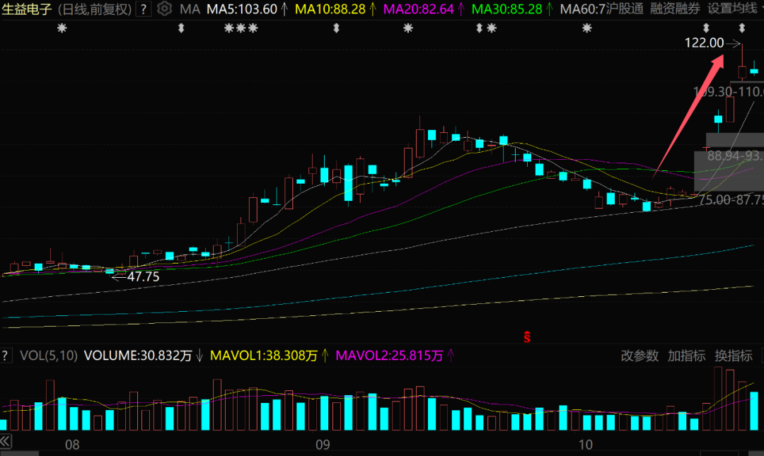 过去几个交易日,生益电子就已经连续暴涨了:10月25日暴涨20%,10月27日大涨8.87%;10月28日大涨8.54%。