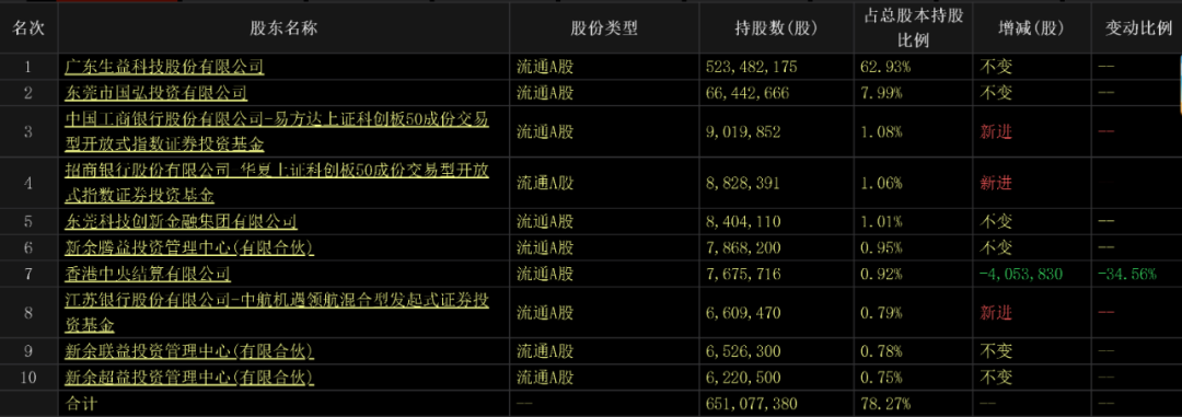 目前,生益科技直接持有生益电子62.93%股份,稳居第一大股东。